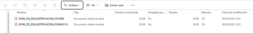 Para ver las citaciones en un solo paquete ubicamos en los documentos del trámite el archivo comprimido y lo descargamos.