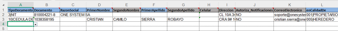 - Solicitantes: En esta hoja se muestra la información de los solicitantes y propietarios, donde el sistema ya prediligencia los campos en el proceso de descarga.